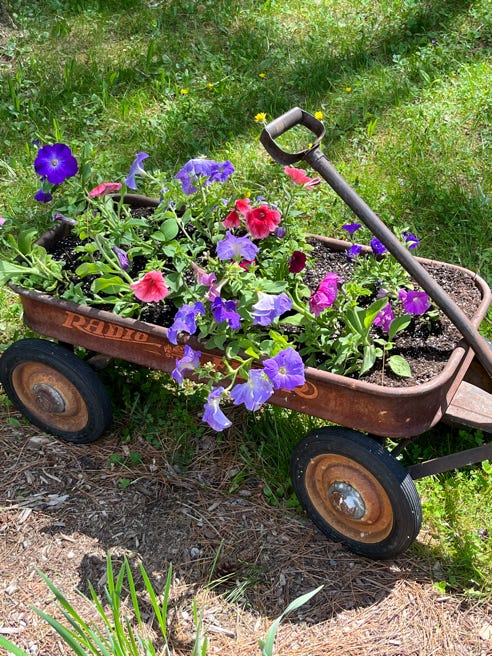 That first day after I moved into what would be my home for several years, I filled my dad’s old wagon with potting soil and then planted a whole bunch of petunias. I took a photo and sent it to my dad by snail mail—he never did master cell phones.